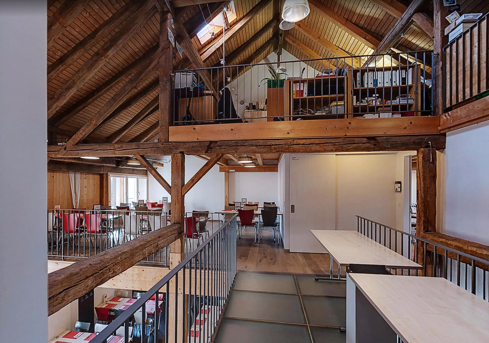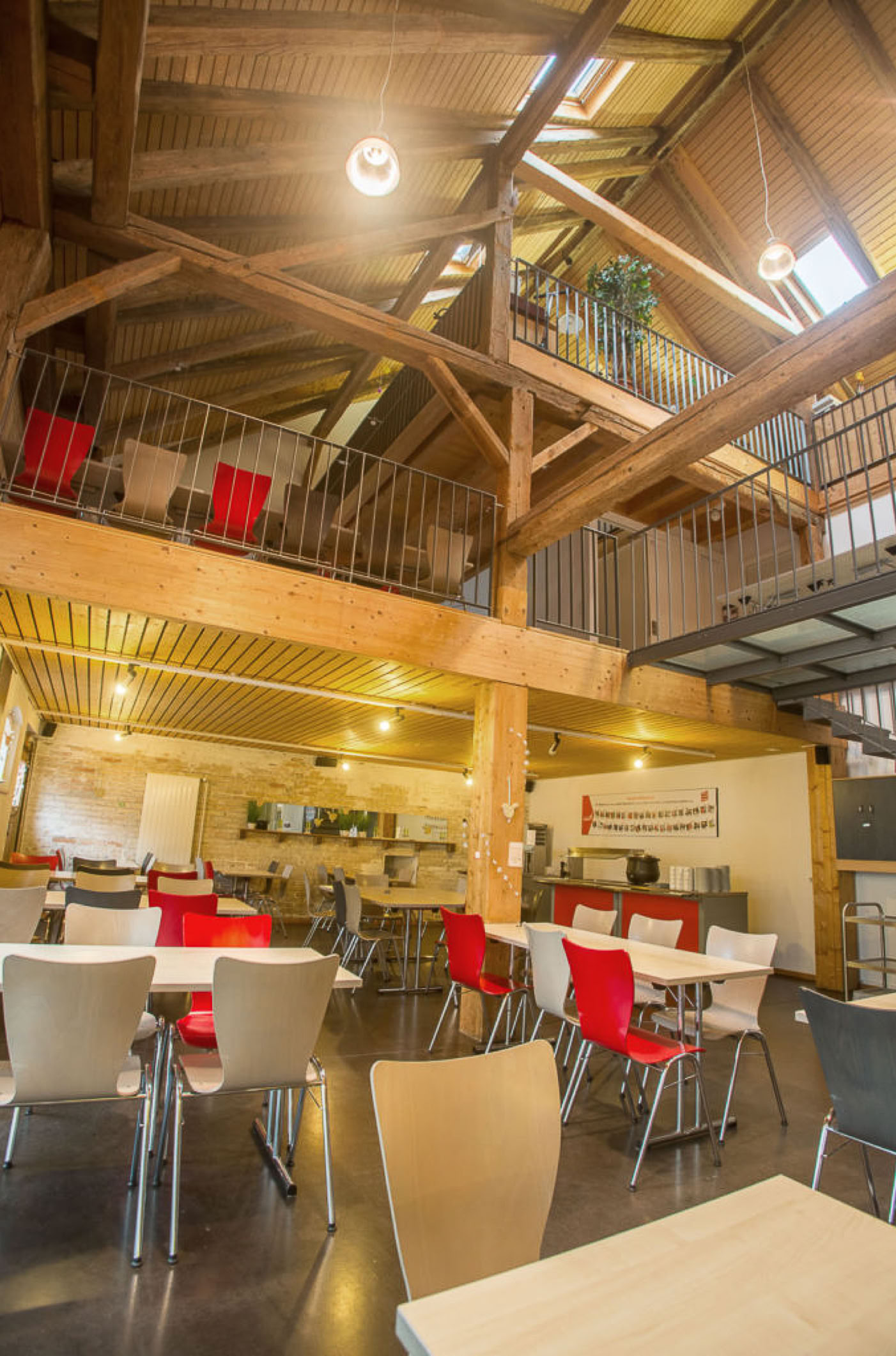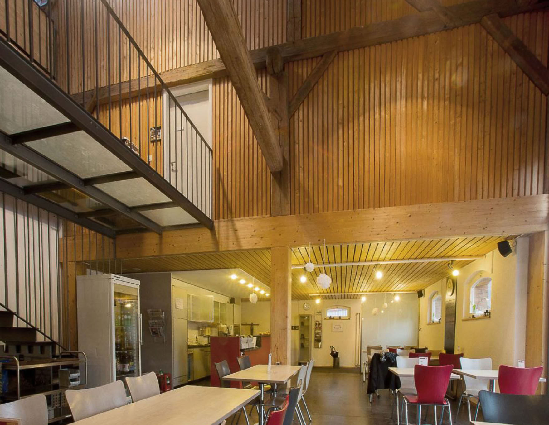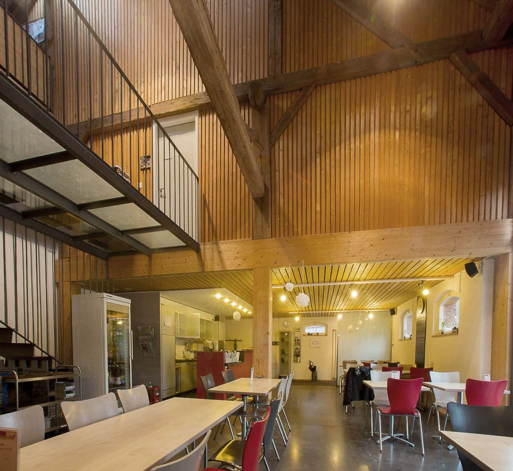 Das Obergeschoss wird als Freizeitraum für die örtliche Kirche genutzt und dient auch der Essensausgabe für Bedürftige und wird für Veranstaltungen vermietet.