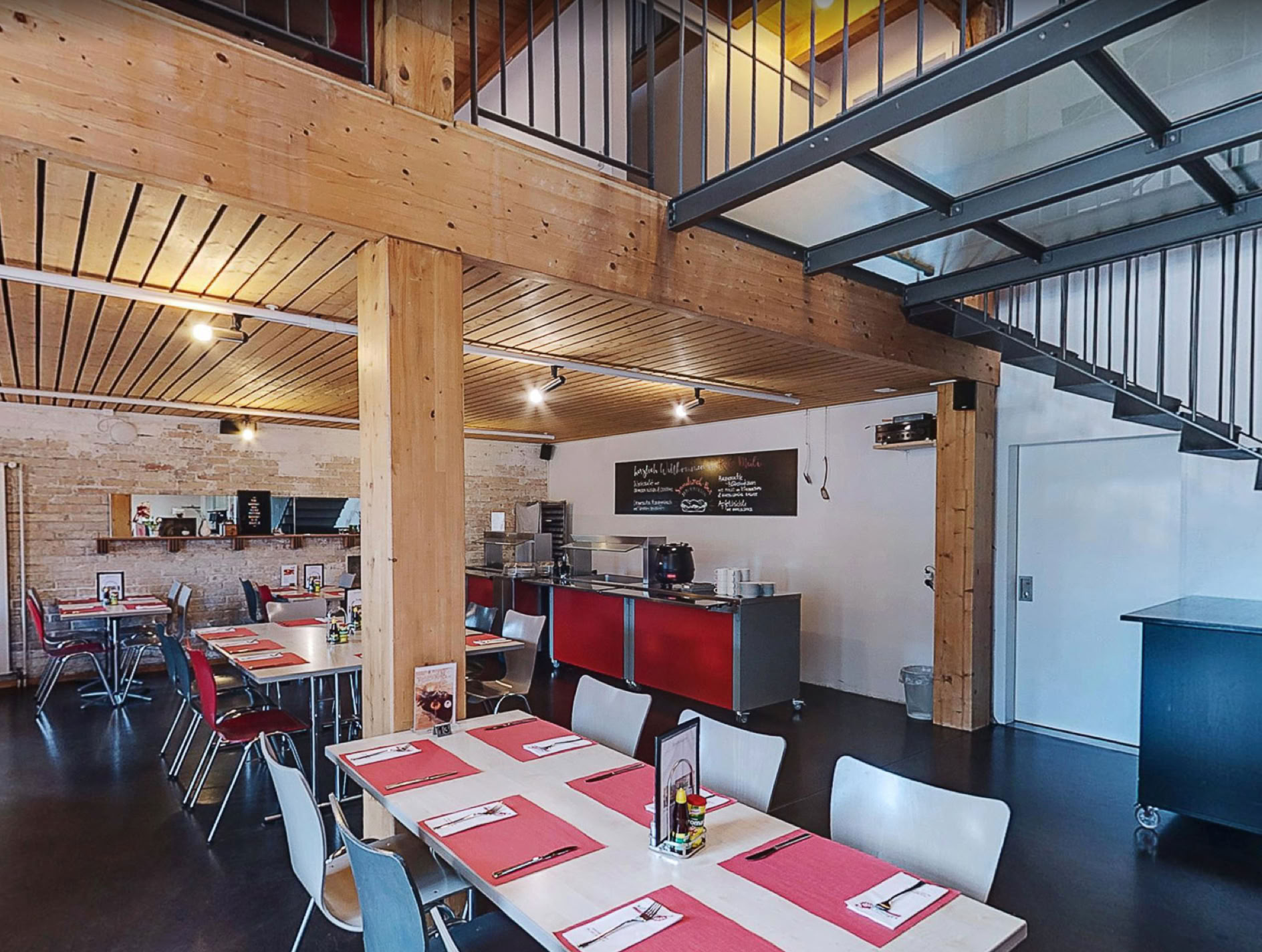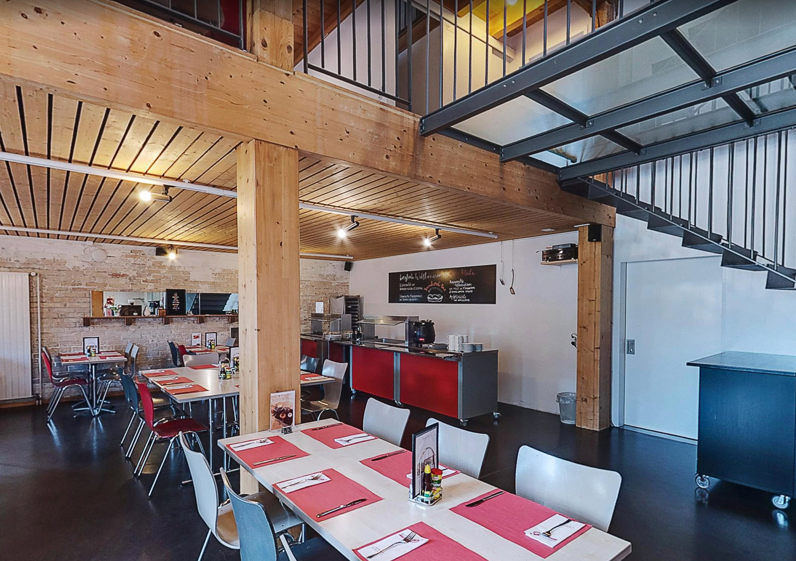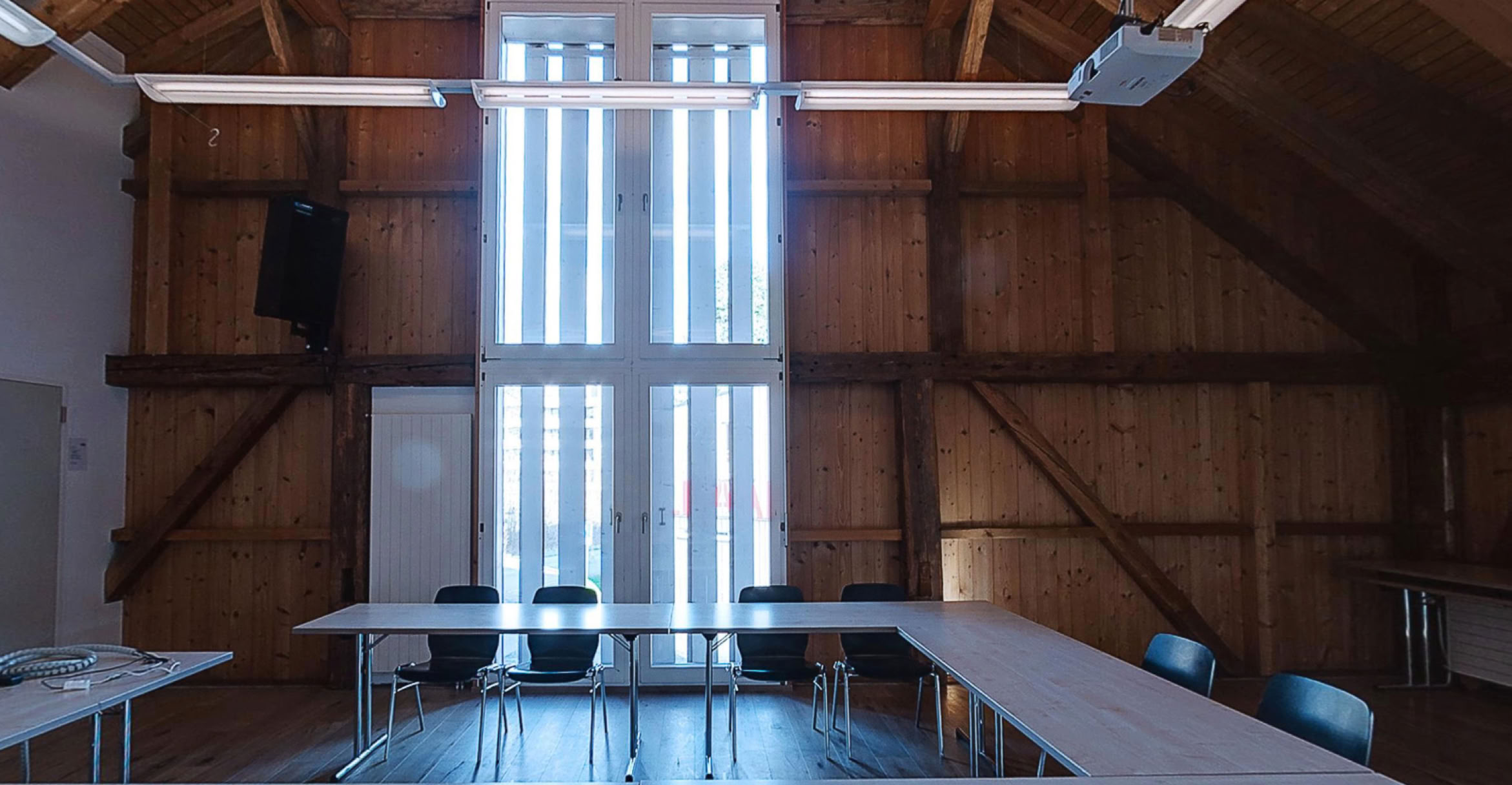 Das Obergeschoss wird als Freizeitraum für die örtliche Kirche genutzt und dient auch der Essensausgabe für Bedürftige und wird für Veranstaltungen vermietet.