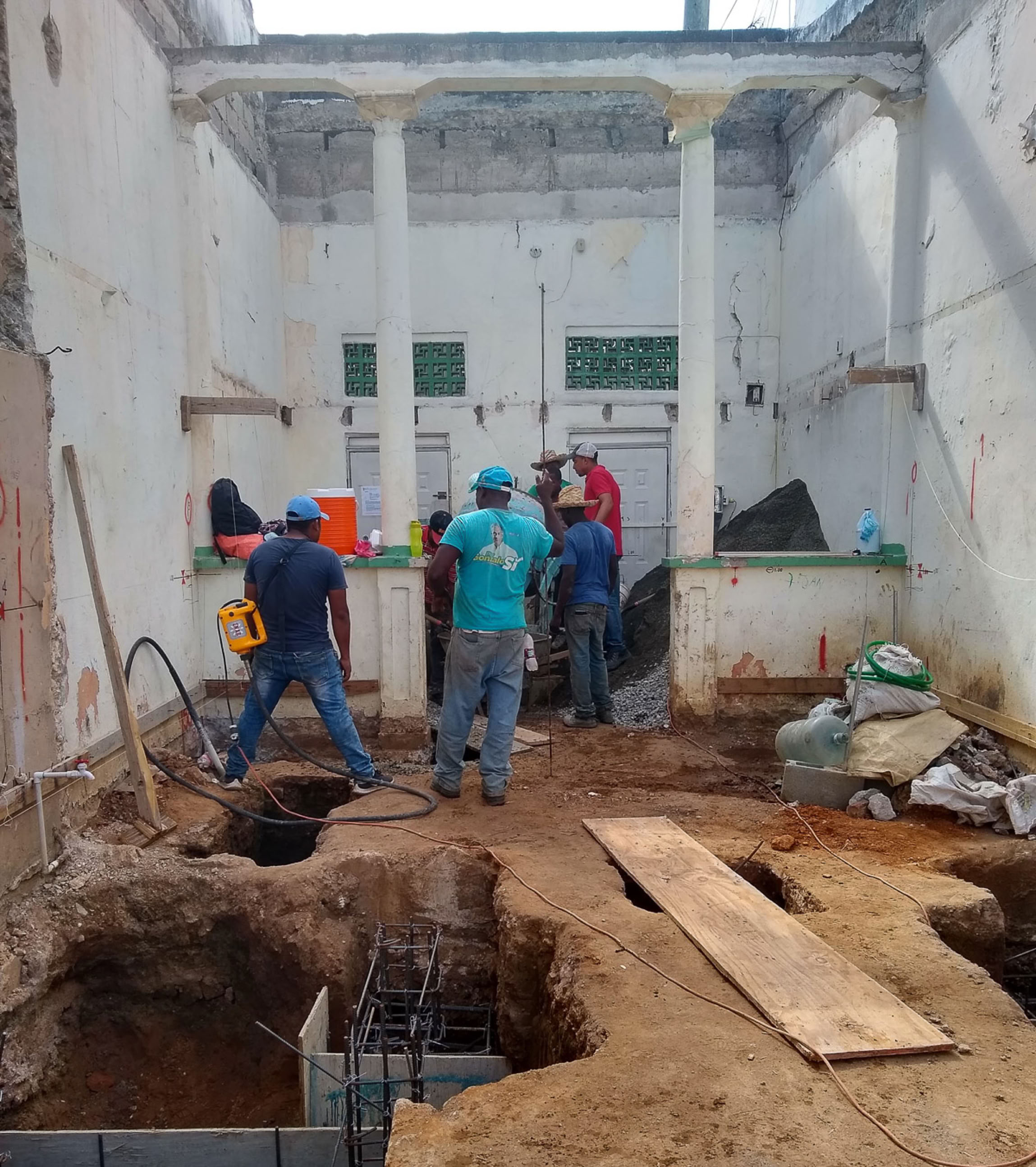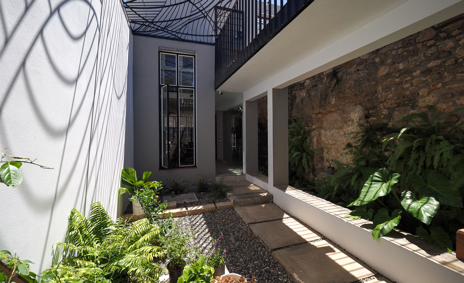 Era una casa típica de principios del siglo XX, estrecha, con dos puertas, una antesala y dos habitaciones y un patio, una planta con un pasillo. Conservamos la esencia de la fachada. Nos gustó la antesala y decidimos mantener sus columnas y su altura.